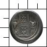 Doppeltes sternförmiges Ornament innerhalb eines zweigeteilten Rechtecks; Weinrebe über Κ im l., Kantharos über Ι im r. Feld.